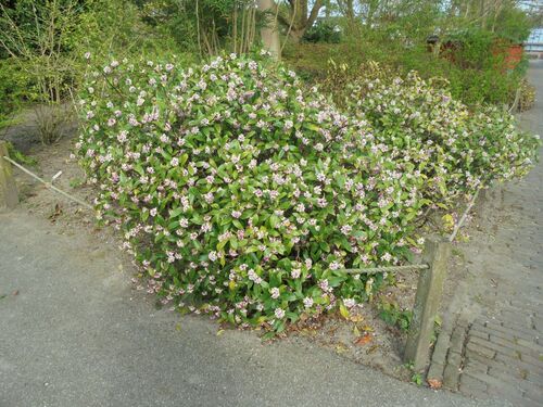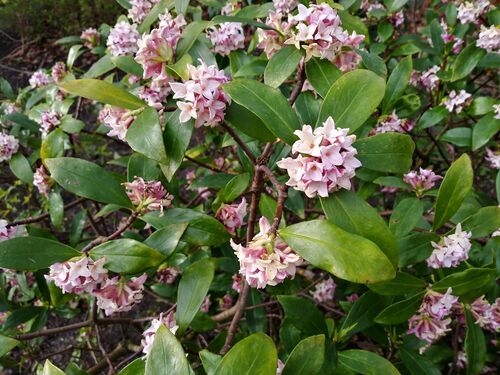 Deze zeer welriekende Daphne met trosjes roze bloemen is afkomstig uit China en Japan: wordt daar in potten voorgetrokken zodat ze met Chinees Nieuwjaar als geurige nieuwjaarswens cadeau gegeven kunnen worden. De bessen zijn giftig, zoals van alle Daphnes en helaas zijn deze aantrekkelijke struikjes nooit erg lang levend.