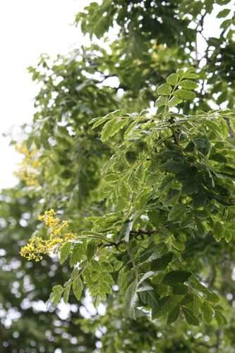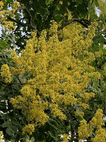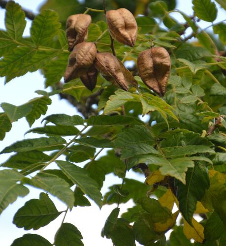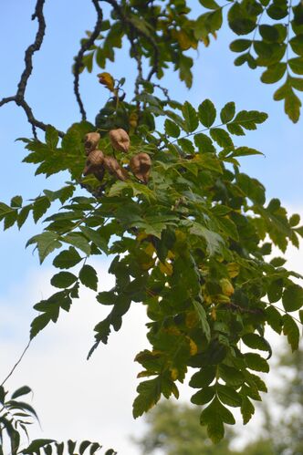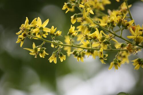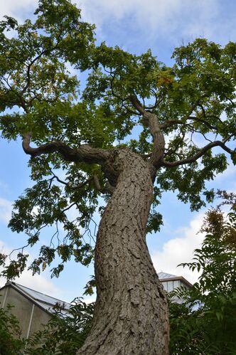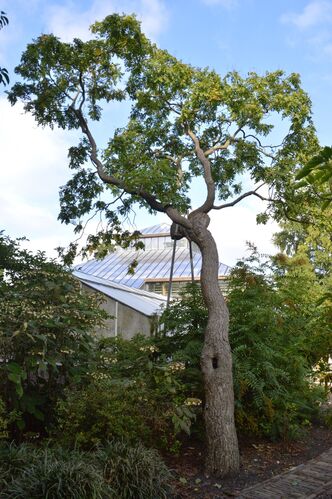 Het enige exemplaar van Koelreuteria in de Leidse Hortus werd geplant omstreeks 1905 en is een mooie, hoog en breed uitgegroeide oude boom. Deze soort komt oorspronkelijk uit China en Taiwan en werd omstreeks 1750 in Frankrijk geïntroduceerd. Het is een opvallende, goede schaduwboom, waaronder het niet al te donker wordt. De jonge scheuten zijn roodachtig van kleur, in de winter heeft de kale boom grijze twijgen. Het grote blad is veervormig samengesteld en de zijblaadjes zijn vaak diep ingesneden; in de herfst kan het blad prachtig geel verkleuren. Koelreuteria bloeit in augustus-september, wanneer er niet veel bloeiende bomen en struiken meer te vinden zijn, met grote trossen kleine heldergele bloemetjes. Na de bloei worden blaasvormige doosvruchten gevormd met daarin drie glimmende, gitzwarte zaden. De zaden kiemen gemakkelijk, ook in Nederland.