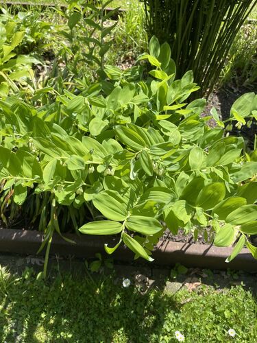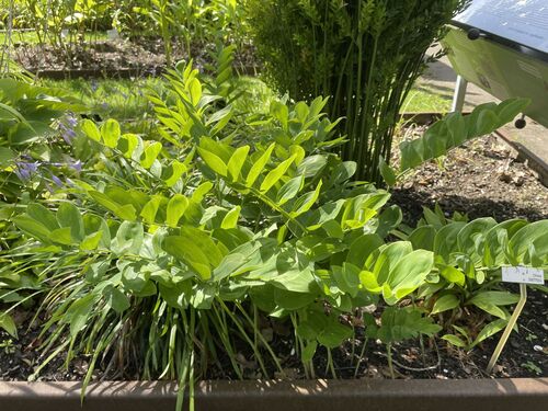 Mooie vaste plant voor halfschaduw met elegant overbuigende takken, waaraan trosjes van 2 groen-witte, langwerpige bloemetjes in het voorjaar verschijnen. Nu zien we de zwarte bessen. Kruipt met een wortelstok waarop de littekens van vorige stengels te zien zijn: de zegels van Koning Salomo.