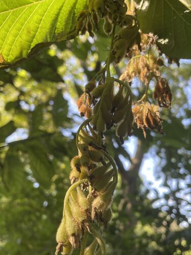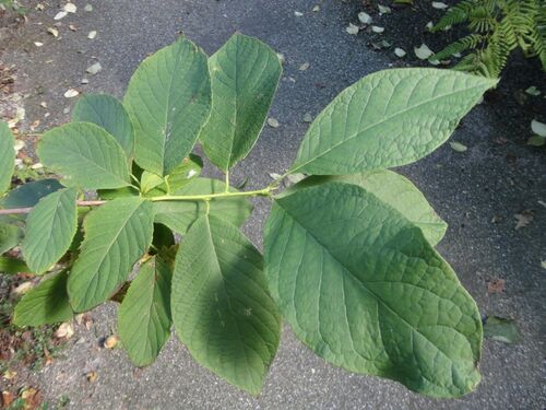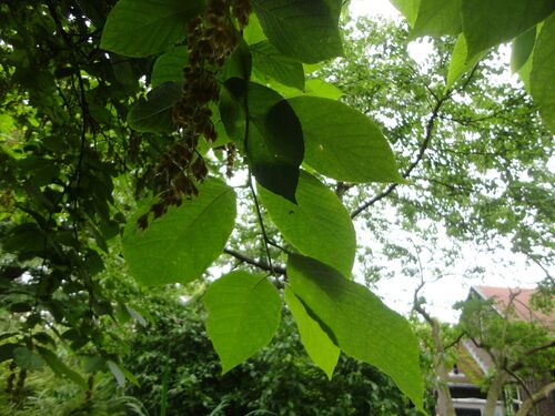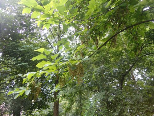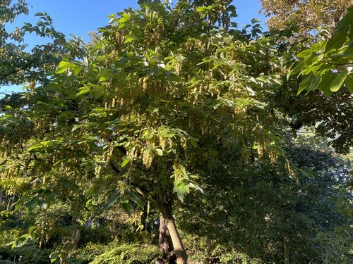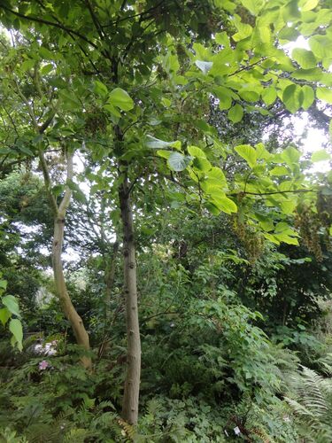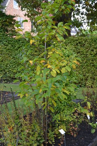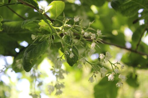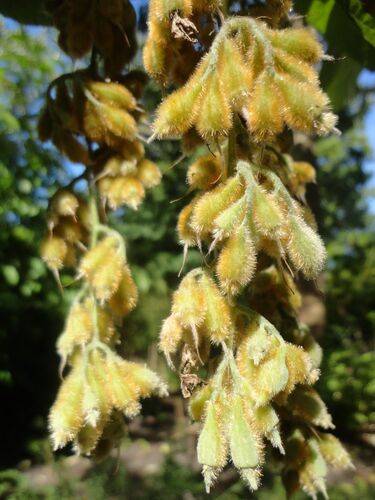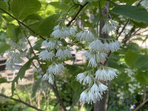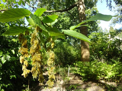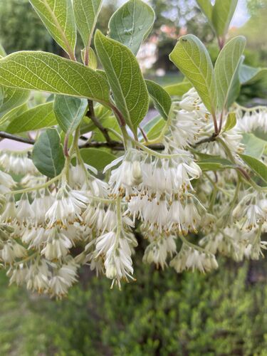 Deze fraaie, voorjaarsbloeiende boom of struik uit China en Japan, heeft lichtbruine twijgen en bladeren tot wel 15 cm. lang, ovaal. In het voorjaar zien we de witte bloemen in hangende trossen als in “rijtjes”. Nu zien we trossen bruine, behaarde vruchtjes. Houdt van halfschaduw, grote sierwaarde in de tuin: vraagt wel ruimte.